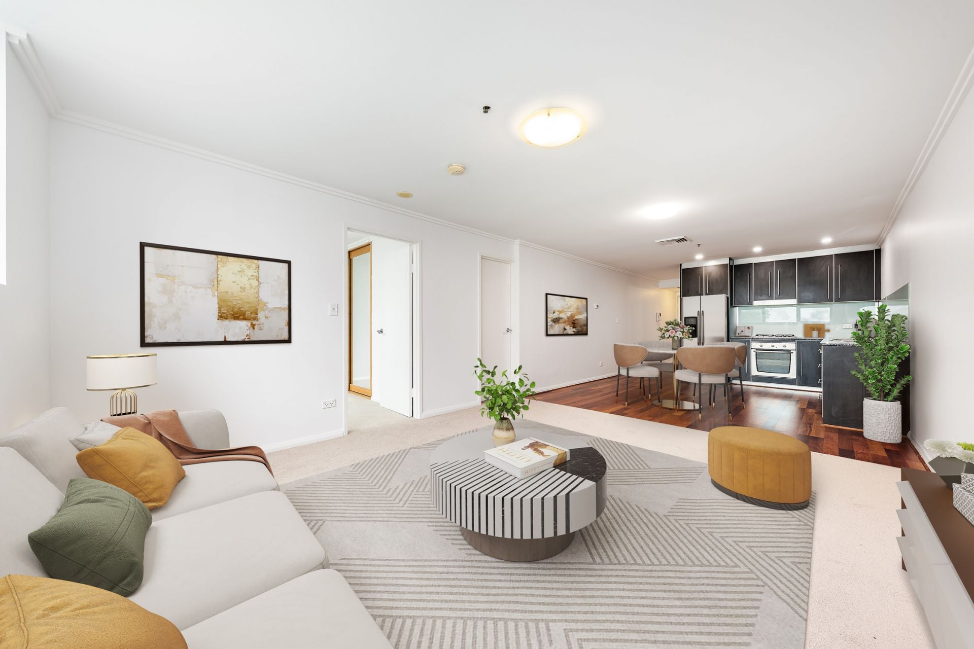 * Elegant timber flooring in the dining area and kitchen